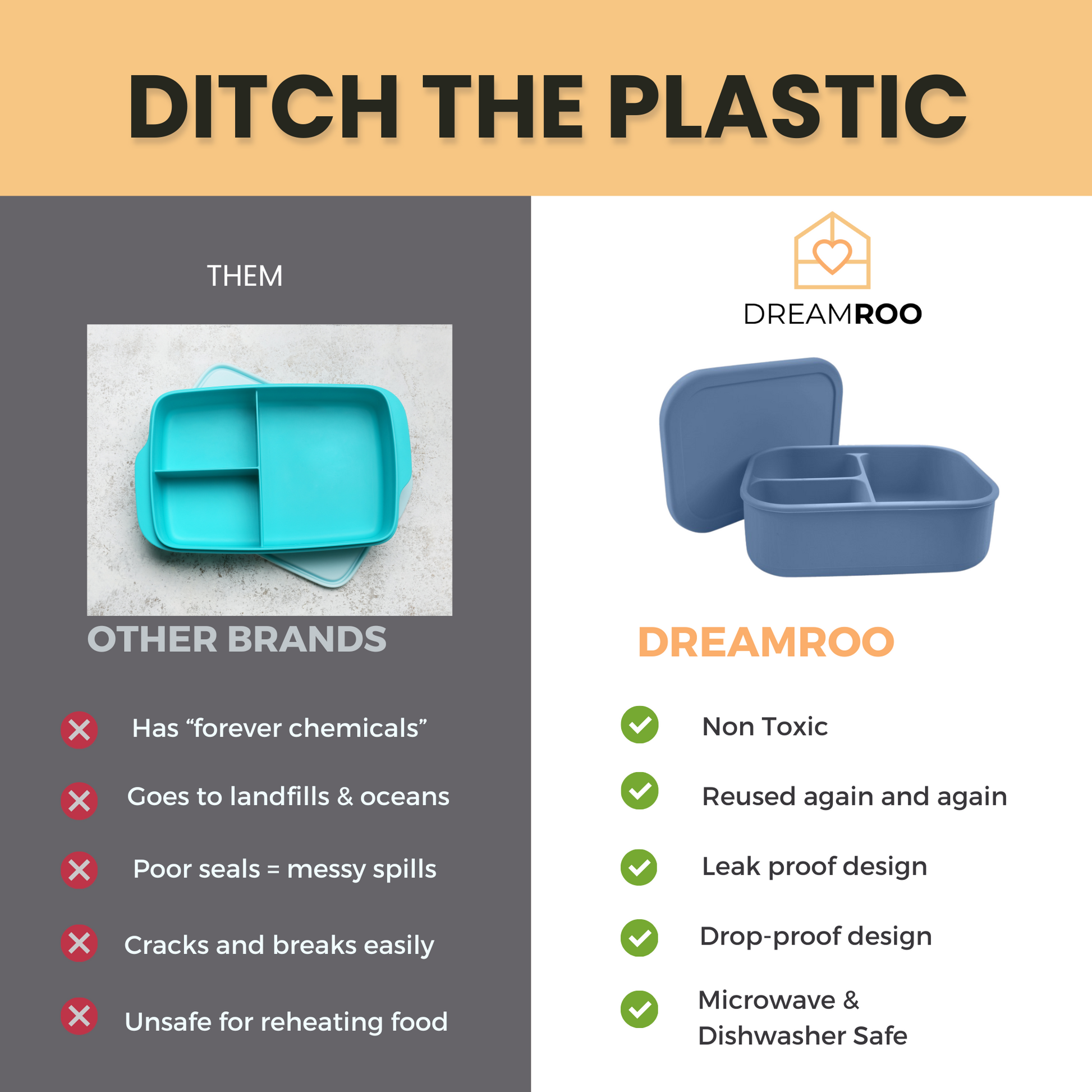 Dreamroo Container are made from 100% non-toxic, food-grade silicone, free from BPA, PVC, and phthalates, ensuring it's safe for your family and the environment.
