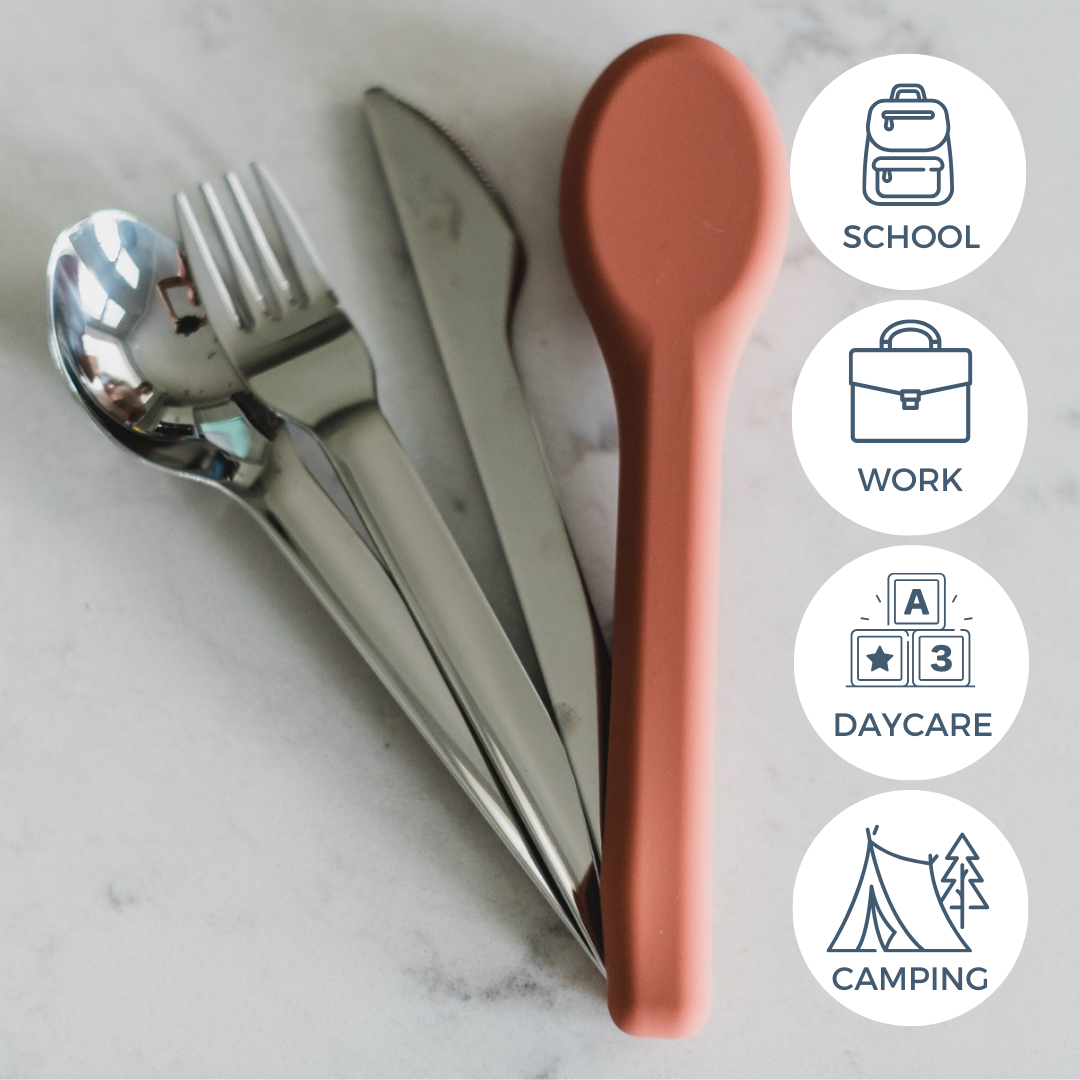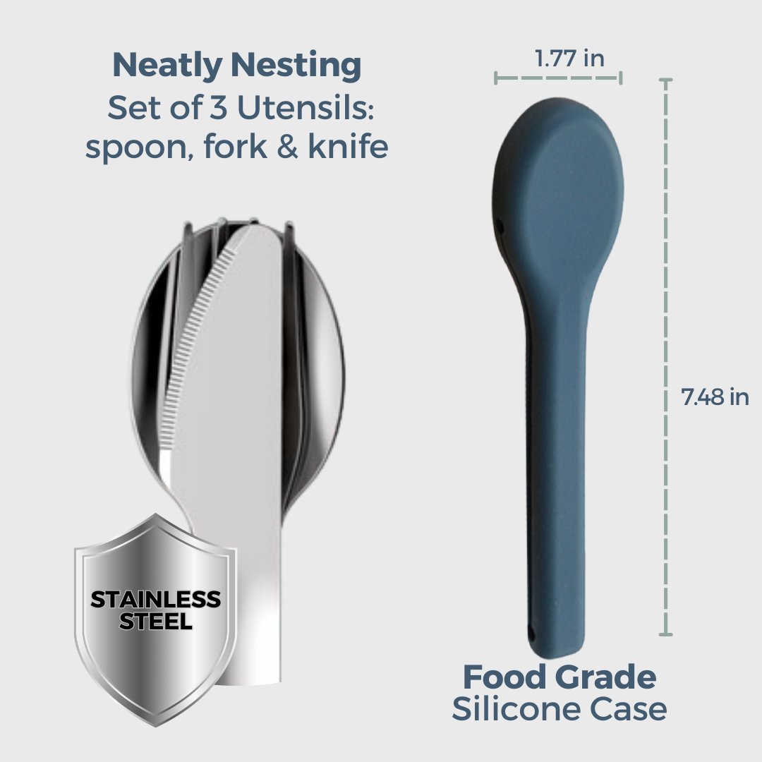 Great set of utensils. Will be easy to toss into a lunchbox and don't take up much room. The silicone case is an added bonus- it keeps everything together.